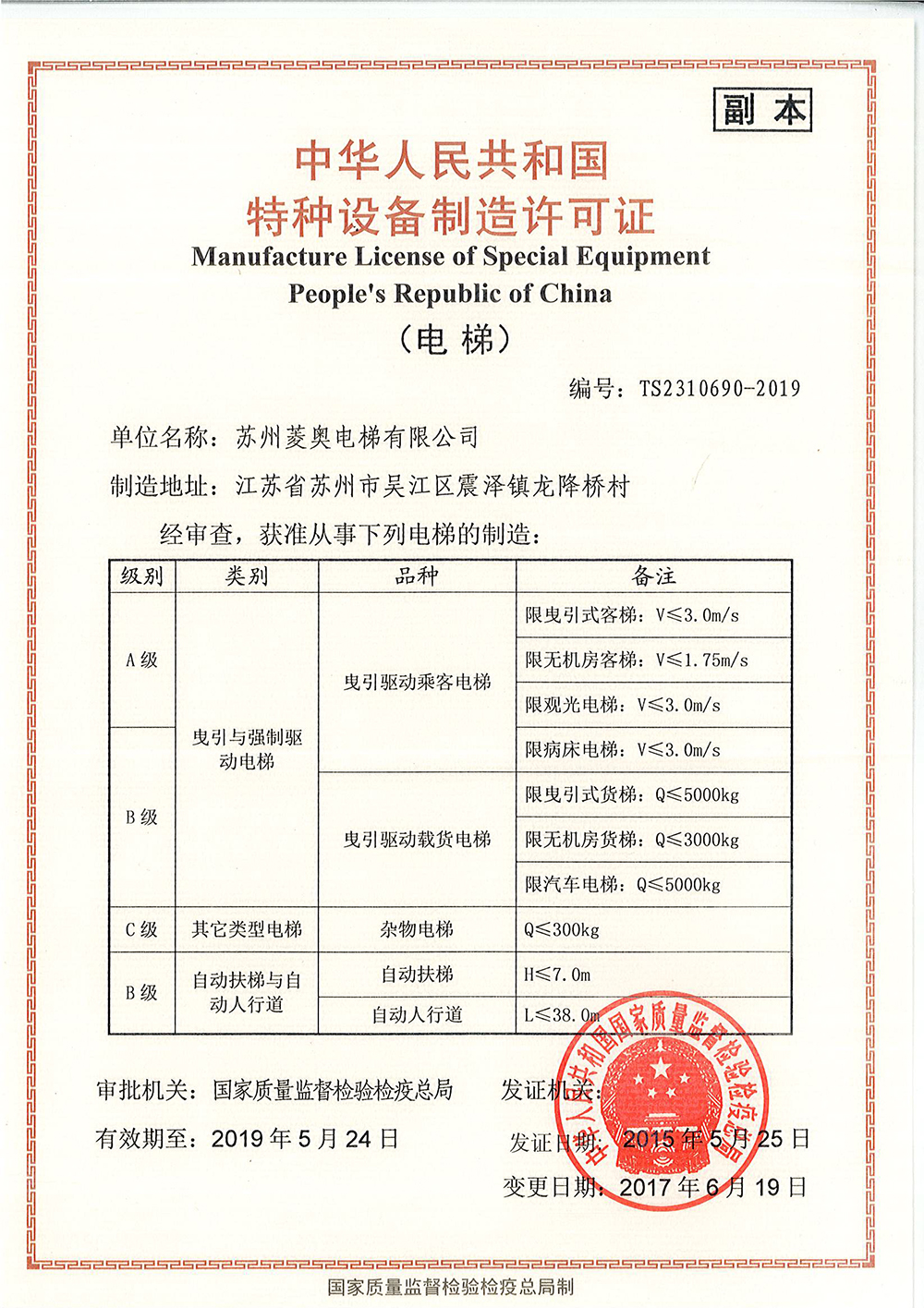 特種設(shè)備制造許可證