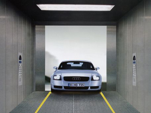 電梯轎廂設(shè)有前后開門,更方便了汽車進出轎廂和安全。